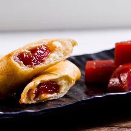 Rolinho recheado com Queijo e Goiabada .