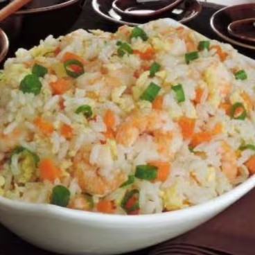 Gohan , cenoura , ovo , ervilha , cebolinha e camarão .