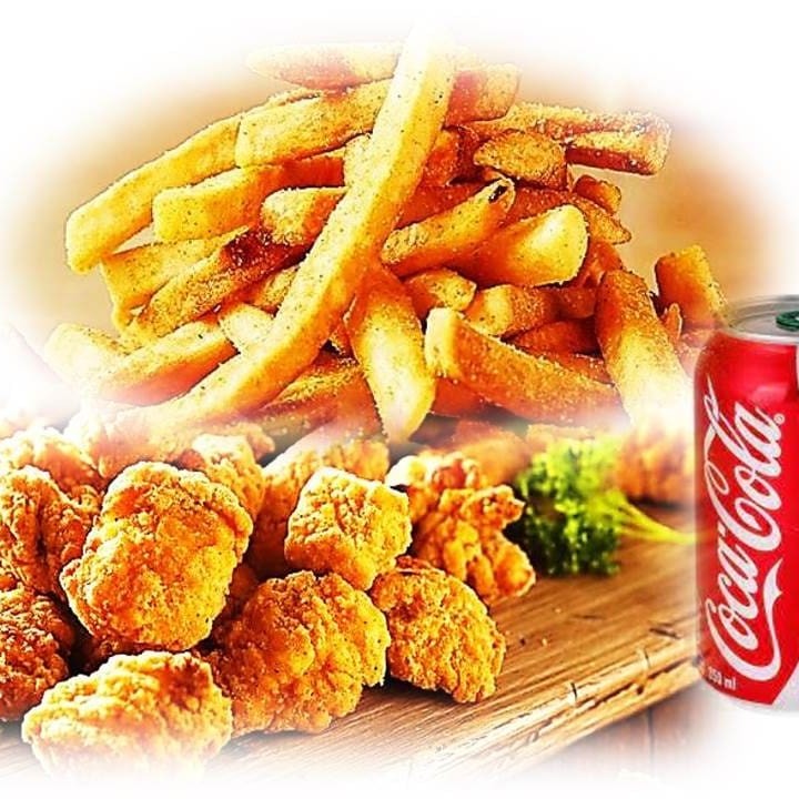Delicioso combo com 6 deliciosos empanados de filés de peito sassami com tempero especial, acompanha 1 porção de batata frita (100g) e 1 refrigerante coca 350ml, ideal para uma pessoa.