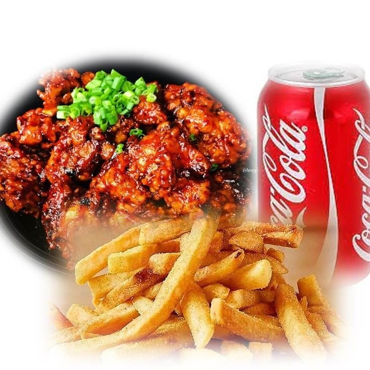 "Quem conhece sabe como o coreano adora uma refeição ""quente"". Esse combinado de cortes é maravilhoso, reúne (2 coxinhas de asa, 2 pedaços de filé de coxa e sobrecoxa desossada, 2 tiras de file de peito sassami) com molho picante, ainda uma porção de batata frita (100 g) e 1 refrigerante 350ml."