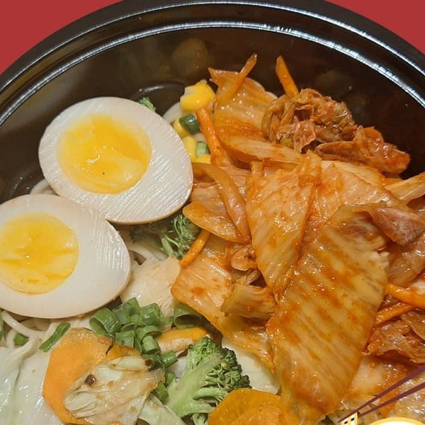 Misso lamen kimuchi vai acelga coreana picante, ovo com gema cremosa, legumes refogados, uma fatia de tyashu (copa lombo). O caldo vai em uma embalagem separada para conservar a qualidade dos ingredientes, principalmente a massa do lamen. (imagem ilustrativa) Nosso misso lamen é preparado com o caldo de galinha de produção própria que leva mais de 6 horas para ficar pronto. Também na pasta de misso são acrescentados mais 10 temperos japoneses e orientais para acrescentar mais sabor ao caldo. A massa utilizada tem 30cm de comprimento seguindo a tradição dos melhores lamenyas do Japão, inclusive com farinha de trigo importada. O resultado é um lamen preparado com muito cuidado e carinho e com sabor que irá surpreender.