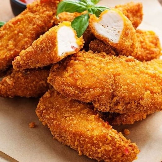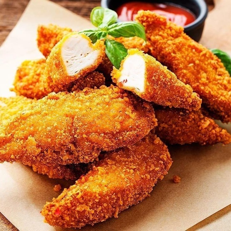 Tiras De Filé De Peito Empanado Agora paramos no país que popularizou o frango frito crocante! 6 deliciosos pedaços de filé de peito em tiras sassami, com temperos tradicionais, cuidadosamente empanados e fritos mantendo a suculência e a textura crocante. Acompanha um molho da casa.