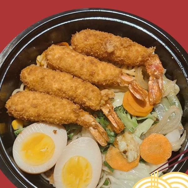 Misso lamen ebi vai ovo com gema cremosa, legumes refogados, milho, cebolinha e camarões empanados. O caldo vai em uma embalagem separada para conservar a qualidade dos ingredientes, principalmente a massa do lamen. (imagem ilustrativa) Nosso misso lamen é preparado com o caldo de galinha de produção própria que leva mais de 6 horas para ficar pronto. Também na pasta de misso são acrescentados mais 10 temperos japoneses e orientais para acrescentar mais sabor ao caldo. A massa utilizada tem 30cm de comprimento seguindo a tradição dos melhores lamenyas do Japão, inclusive com farinha de trigo importada. O resultado é um lamen preparado com muito cuidado e carinho e com sabor que irá surpreender.
