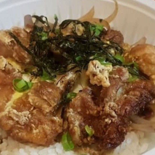 Este prato consiste em lombo de porco empanado refogado em cebola, ovo e molho especial. Este refogado vai sobre uma porção de arroz japonês (gohan). Porção para uma pessoa.