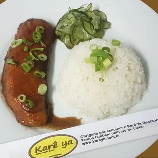 Karê é um dos pratos mais populares no Japão e tem origem indiana e é conhecido no Brasil como curry. No estilo japonês o molho é mais encorpado e leva batata, cenoura e pedacinhos de carne para dar mais sabor ao prato. No caso do salmão grill o filé é grelhado na manteiga. A montagem final do prato é feita com arroz japonês, molho de karê e a carne escolhida. O resultado é um prato muito saboroso, principalmente pelo karê ser bem temperado e picante e o arroz japonês não levar tempero algum. Tudo isto com o complemento da carne que você escolheu. Vale a pena provar e conhecer este saboroso prato!