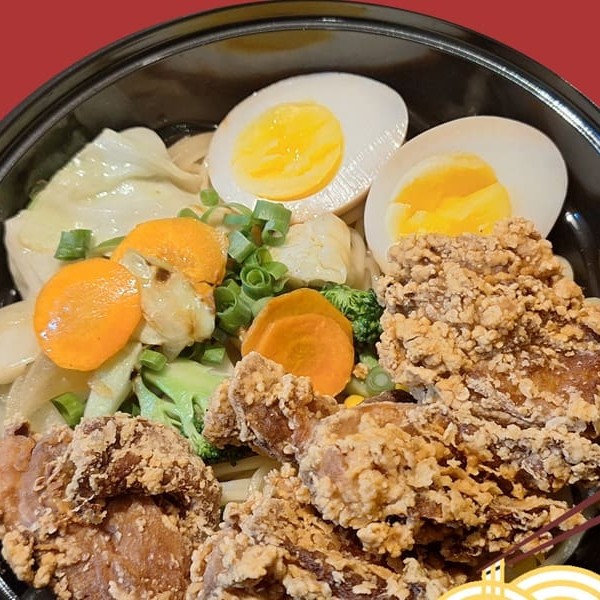 Misso lamen kara ague vai o frango a passarinho japonês, ovo com gema cremosa, legumes refogados. O caldo vai em uma embalagem separada para conservar a qualidade dos ingredientes, principalmente a massa do lamen. (imagem ilustrativa). Nosso misso lamen é preparado com o caldo de galinha de produção própria que leva mais de 6 horas para ficar pronto. Também na pasta de misso são acrescentados mais 10 temperos japoneses e orientais para acrescentar mais sabor ao caldo. A massa utilizada tem 30cm de comprimento seguindo a tradição dos melhores lamenyas do Japão, inclusive com farinha de trigo importada. O resultado é um lamen preparado com muito cuidado e carinho e com sabor que irá surpreender.