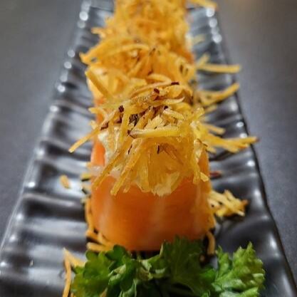 Rolinho primavera de salmão com cream cheese