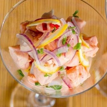 Mix de peixes do Dia marinados no limão, cebola roxa, pimentão colorido.