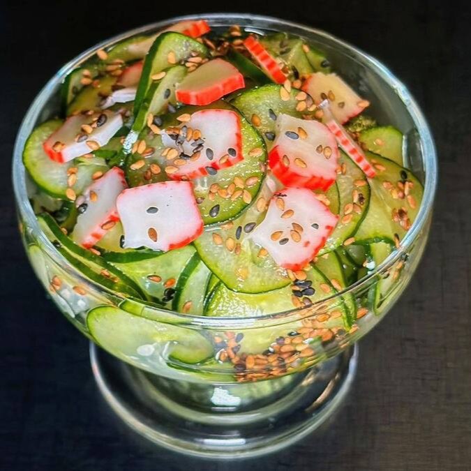 Pepino japones agridoce e kani kama