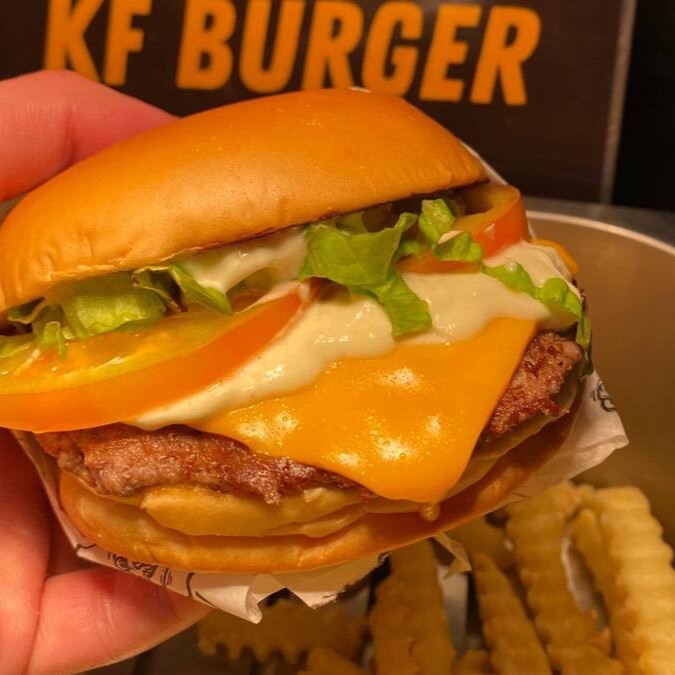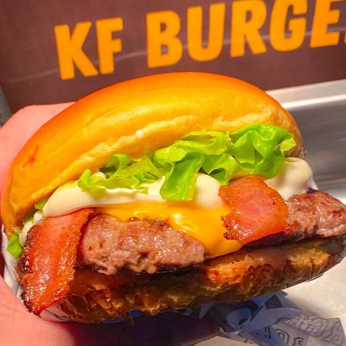 2 Kf Bacon (Pão brioche, alface picado, tomate, carne 110g, queijo e bacon) + 2 batats fritas de 150g cada e uma Coca-Cola 600ml