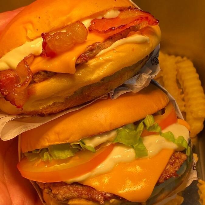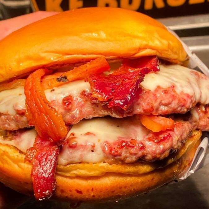 Pão brioche, Dois Hambúrgueres de 110g, queijo Mozarela derretido, Bacon crocante, Maionese artesanal :)