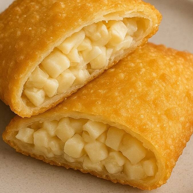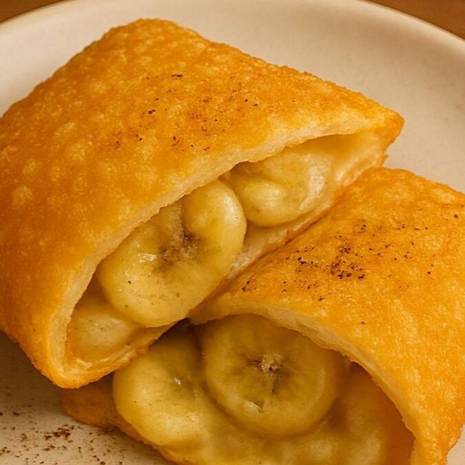 Massa crocante e douradinha, recheada com banana bem madura, canela e aquele toque de açúcar que dá o sabor perfeito de sobremesa feita com carinho.