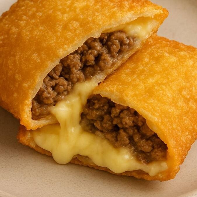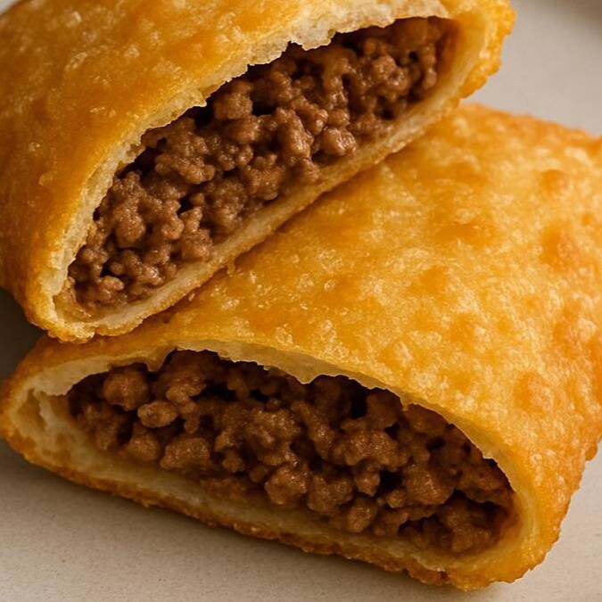 Massa crocante recheada com carne moída temperada no ponto certo, suculenta e saborosa em cada mordida!