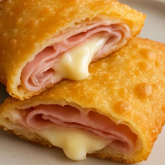 Molho de tomate, mussarela, presunto e orégano — o clássico sabor da pizzaria em formato de pastel!