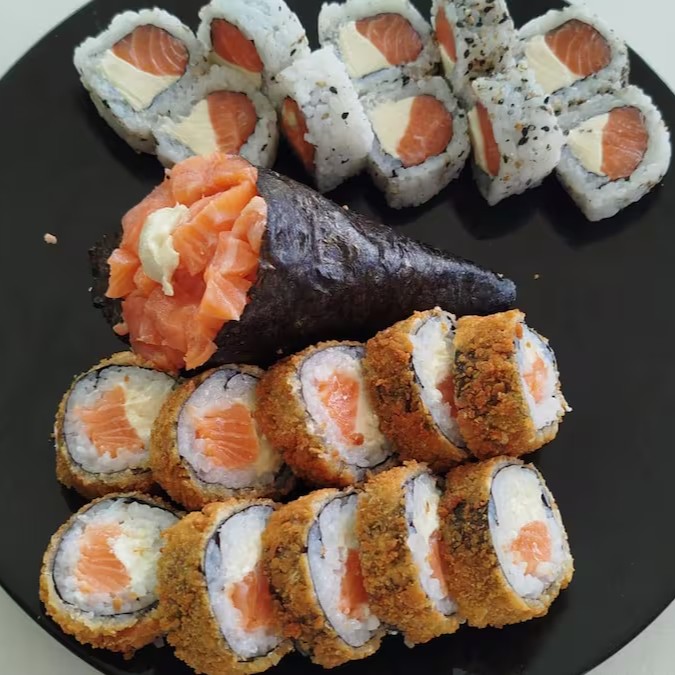 4 Uramaki Filadélfia,4 Uramaki skin,4 Niguiri salmão,4 Niguiri skin