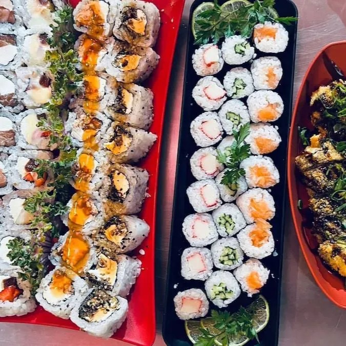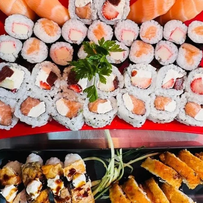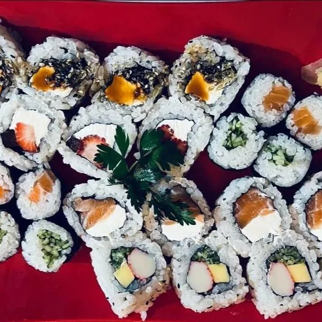 10 Hot Filadélfia 10 Uramaki Patê de Salmão 10 Uramaki Romeu e Julieta 10 Hossomaki Kani Kama 10 Hossomaki Salmão