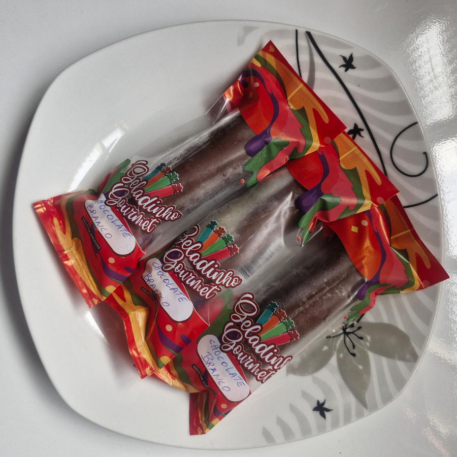 3 Unidades Geladinhos Gourmet, Chocolate Branco Com Casquinha De Chocolate 120ml..
