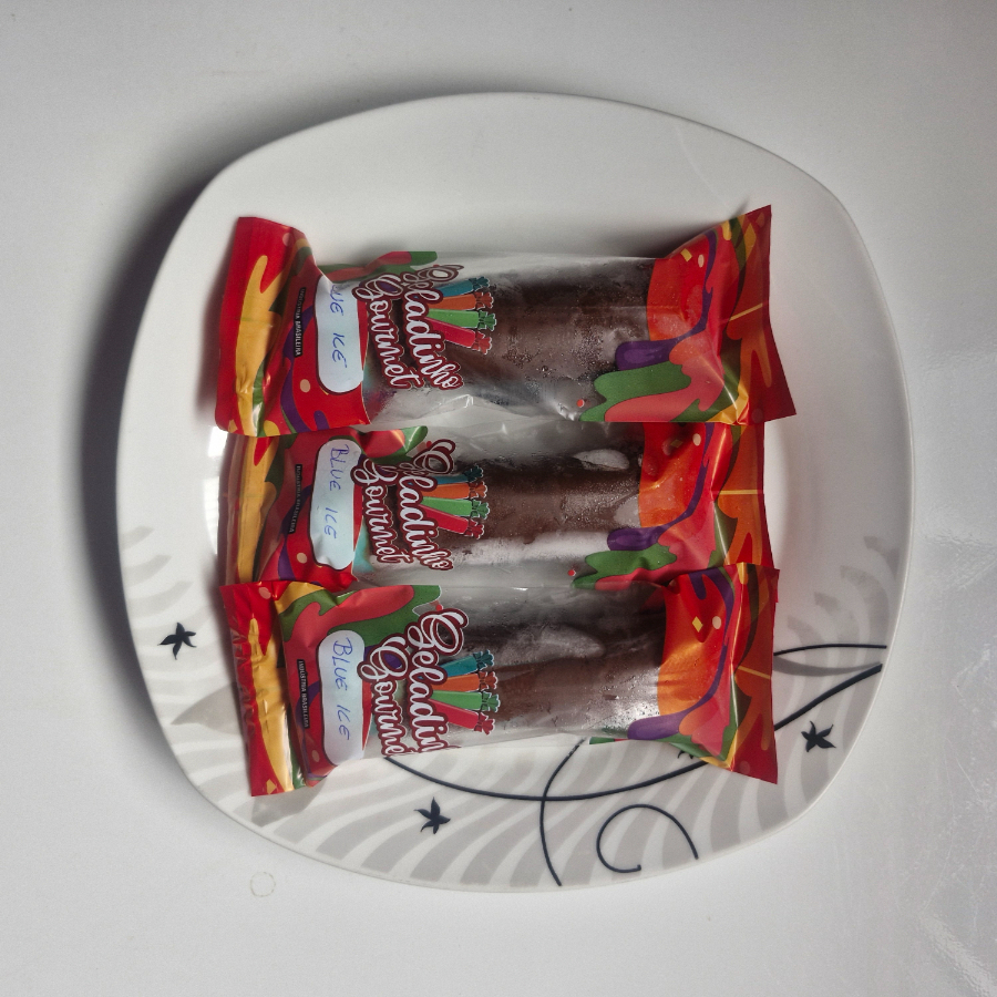 3 Unidades Geladinho Gourmet,blue Ice Com Casquinha De Chocolate 120ml.