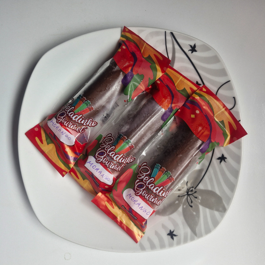 Geladinho Gourmet,morango Com Casquinha De Chocolate 120ml.