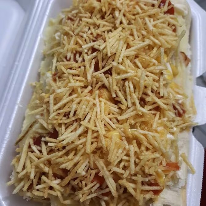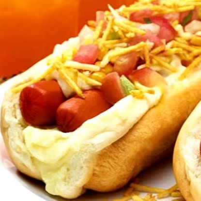 Pão, maionese, 2 vinas, tomate, milho, batalha palha