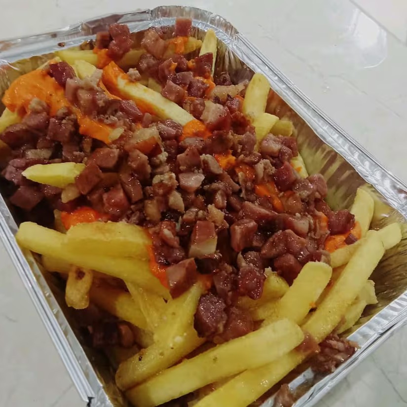 Deliciosa batata frita com cheddar e bacon (500gm)