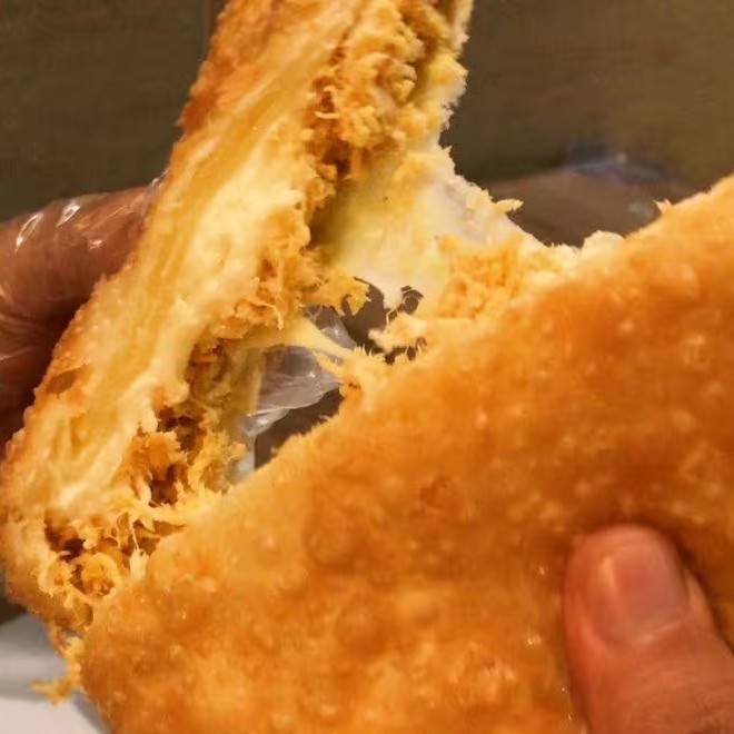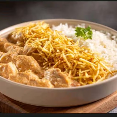 Pão, sassami, bacon, Catupiry, purê de batata e batata palha