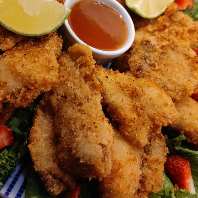 Peixes do Dia marinados no limão, azeite e especiarias.