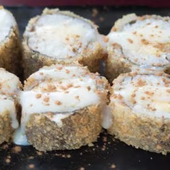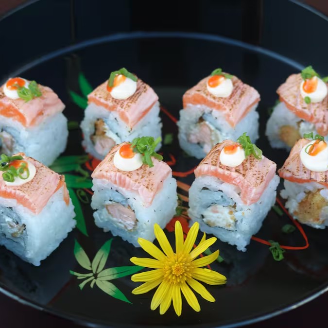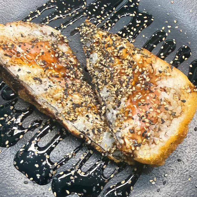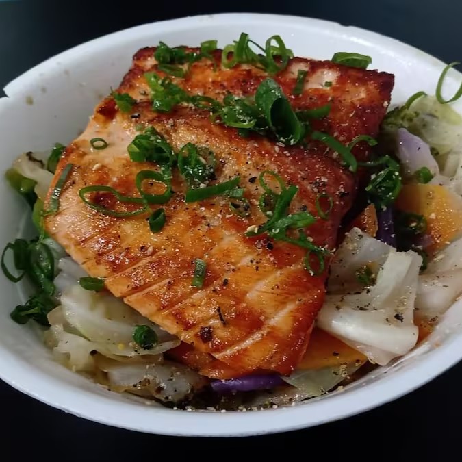 Delicioso salmão grelhado sobre uma base de arroz japonês soltinho, combinado com cream cheese cremoso e coberto por crispy de batata-doce crocante. Finalizado com o irresistível molho tare, que dá aquele toque agridoce perfeito.