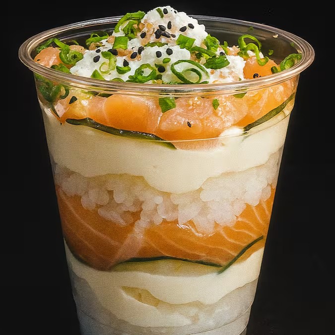 Uma explosão de sabor em cada camada! Nosso temaki no copo combina generosos pedaços de salmão fresco, cream cheese Polenghi cremoso, arroz japonês bem temperado e uma pitada de gergelim torrado para finalizar com crocância e aroma irresistível. Prático, delicioso e perfeito para saborear em qualquer momento do Dia — o verdadeiro sabor do Japão em um copo!