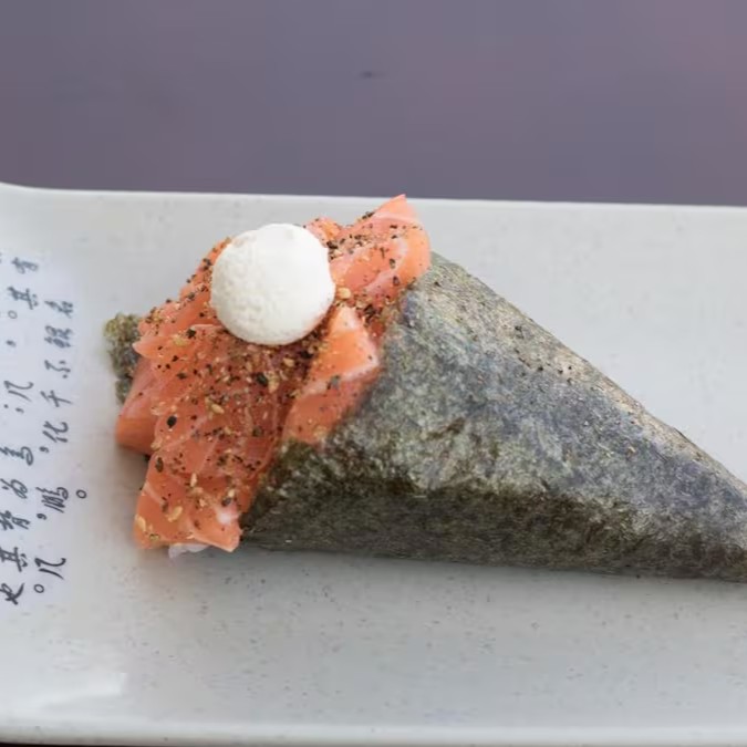 Nosso temaki de copo combina salmão fresco e camarão crocante misturados com arroz japonês, cream cheese cremoso e um toque crocante de alho-poró. Finalizado com pepino fresco e cebolinha, trazendo equilíbrio perfeito entre textura e sabor.