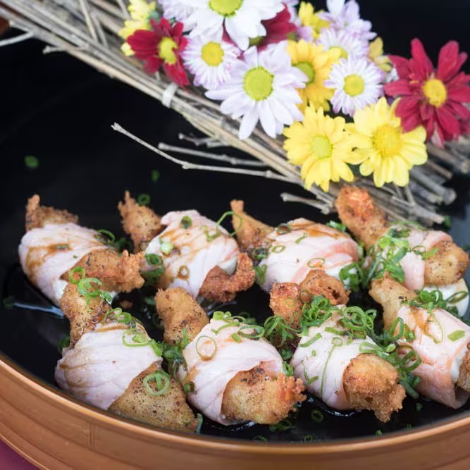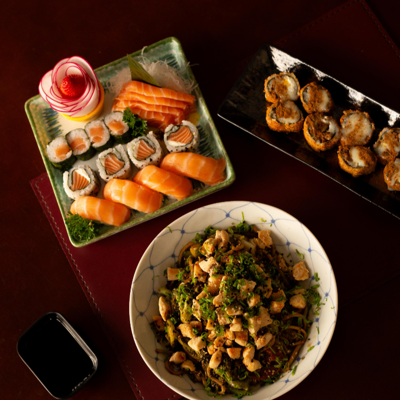 Delicie-se com cubos suculentos de salmão fresco, envoltos em um cremoso cream cheese, finalizados com o toque crocante e aromático da cebolinha fresca. Acompanha o irresistível sunomono — saladinha agridoce de pepino que equilibra perfeitamente o sabor do peixe.