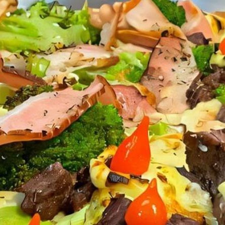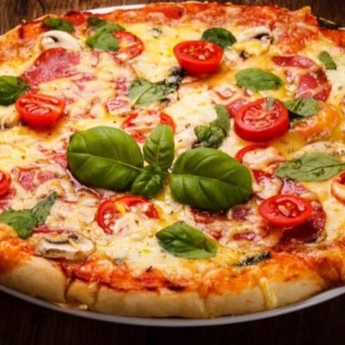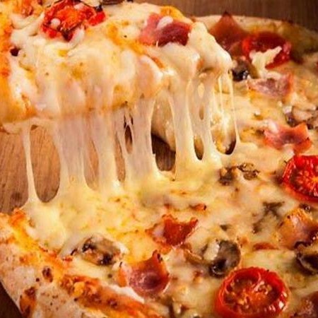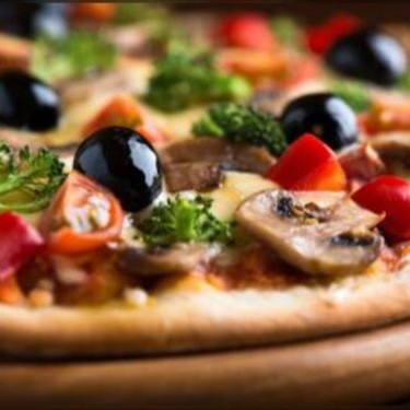 Molho especial, mussarela, palmito, brócolis, milho, azeitona, champingon, tomate e orégano