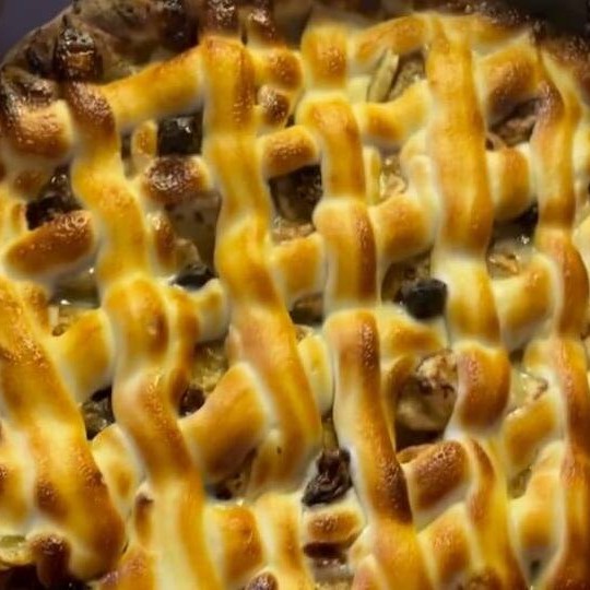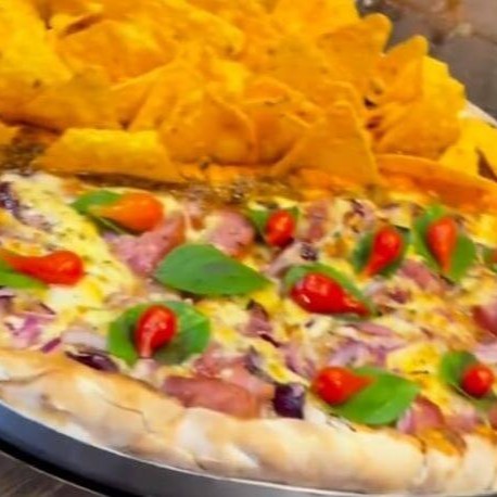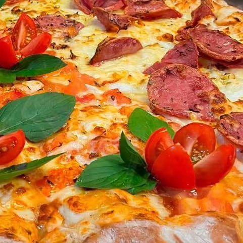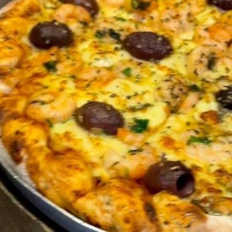 Molho especial, mussarela, calabresa, bacon, ovo, azeitona, cream cheese e orégano.