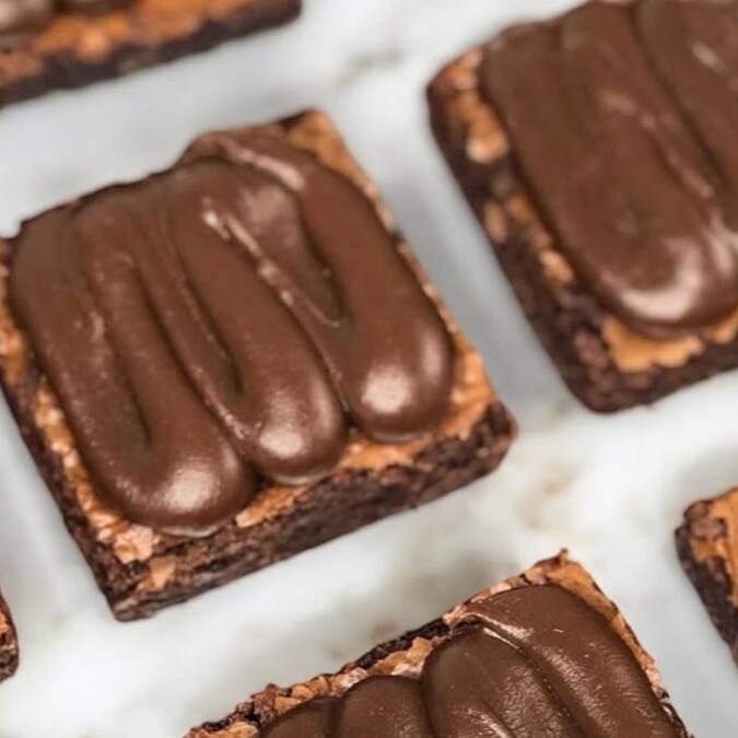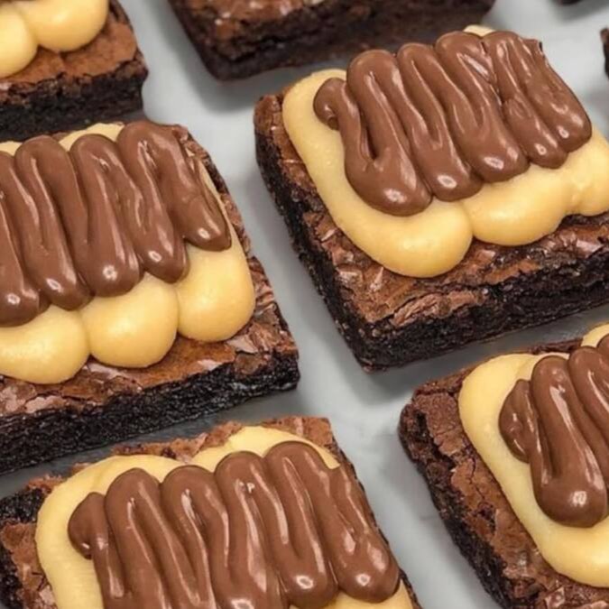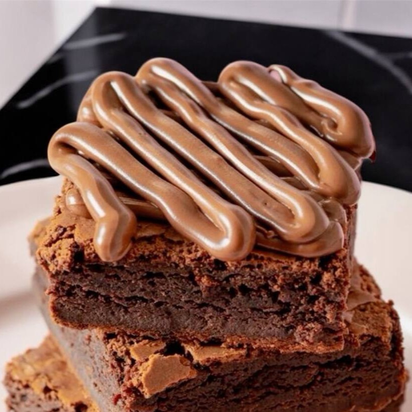 Brownie molhadinho com recheio de brigadeiro de Ninho com Nutella.