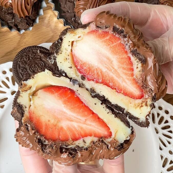 Morango Fresco envolto no nosso delicioso brigadeiro branco, finalizado com crumble de Oreo e Nutella.