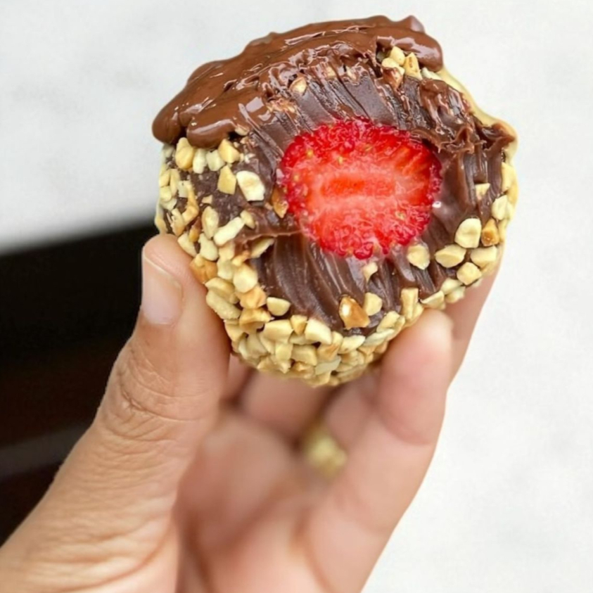 Morangos frescos envolvidos em brigadeiro e cobertos com sucrilhos crocantes caramelizados, uma explosão de sabor e crocância!