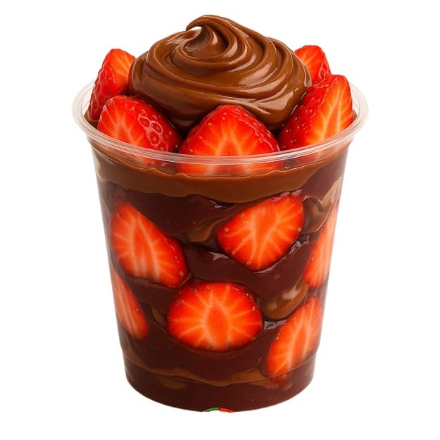 Açaí cremoso e refrescante, com camadas de leite condensado, toque de Ninho e morangos frescos. Um combo irresistível para quem ama indulgência!