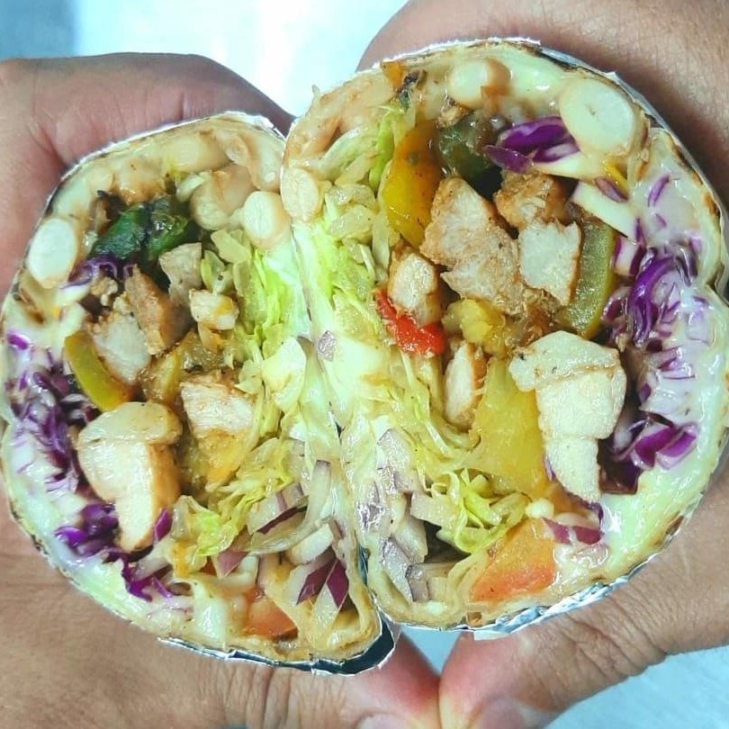 • Tortilha de trigo levemente tostada • Tiras de peito de frango grelhada com cebola e mix de pimentões • Pimenta • Queijo • Cebola roxa • Frijoles • Alface americana • Repolho roxo • Tomate • Molho especial La Kombinacion • Acompanha 1 molho a escolher + 30g de totopos • Vai cortado ao meio. • Não fazemos alterações/retirada de ingredientes nos nossos pratos!!