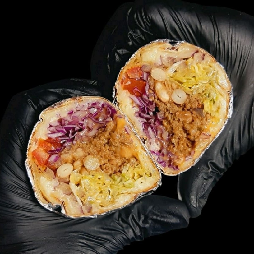 • Tortilha de trigo levemente tostada • Chili picante (carne moída, frijoles, pico de gallo, molho de tomate e pimenta) • Pimenta • Queijo • Cebola roxa • Cheddar cremoso • Alface americana • Repolho roxo • Tomate • Molho especial La Kombinacion • Acompanha 1 molho a escolher + 30g de totopos • Vai cortado ao meio. • Não fazemos alterações/retirada de ingredientes nos nossos pratos!!
