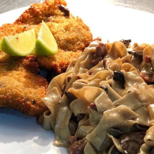 Cotoletta Alla Milanesa Com Tagliatele Alfredo