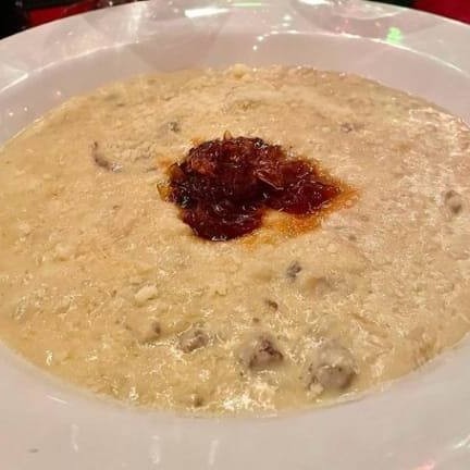Deliciosa combinação de filet mignon meticulosamente cortado em pequenos pedaços, harmonizado com o sabor único e intenso do funghi. A nata fresca, suave e cremosa, confere uma textura inigualável ao prato. Finalizado com uma generosa porção de queijo parmesão, ralado na hora, e salsa fresca picada, que adiciona um toque de frescor e cor a essa criação culinária. Este risoto de funghi com mignon é um deleite para os amantes da verdadeira gastronomia italiana.