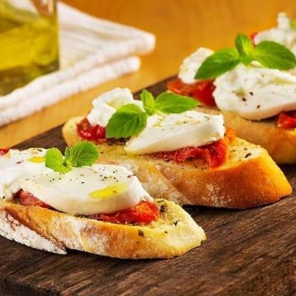 Bruschetta Burrata, Tomate Seco E Manjericão