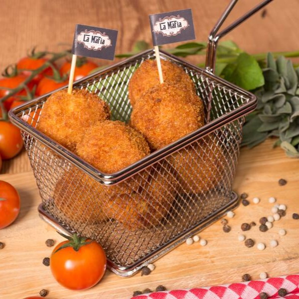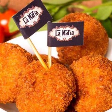 Bolinho de arroz arbóreo (deliciosa massa), recheado com linguiça blumenau e queijo provolone.