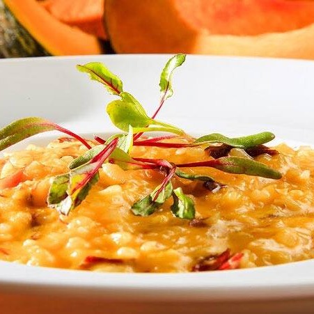 Sob o nome 'Itália', este risoto é uma verdadeira celebração de sabores refinados e texturas agradáveis. A rúcula é fresca e crocante, trazendo um toque levemente picante que se harmoniza perfeitamente com a doçura dos tomates cerejas. Acrescenta-se a isso a nata e o parmesão. A nata, com sua textura cremosa, dá ao prato um toque de suavidade, enquanto o parmesão, ralado na hora, adiciona uma pitada de sabor salgado e uma textura granulada que o torna ainda mais irresistível. Este é um prato que, sem dúvida, irá encantar seu paladar, proporcionando uma experiência gastronômica única e autenticamente italiana.