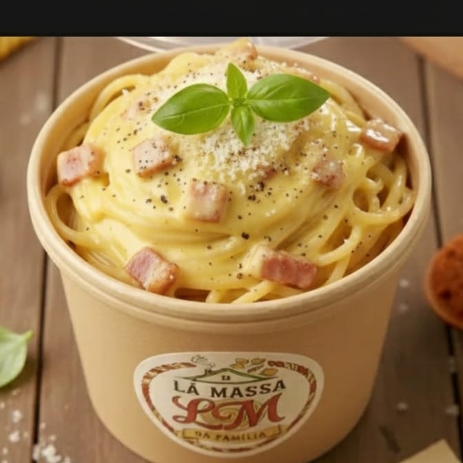 Massa al dente, creme de ovos, parmesão e bacon crocante. Sabor real e autêntica!