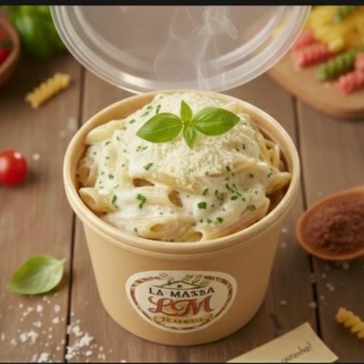 Massa pene mergulhada em um molho cremoso de queijo parmesão e manteiga. Sabor irresistível!