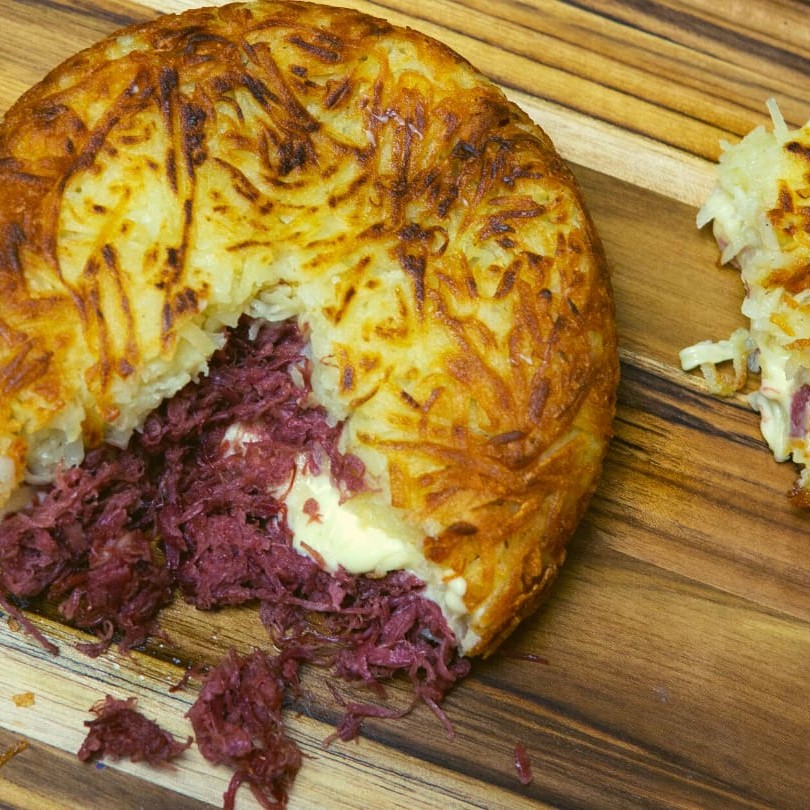 Alcatra, cheddar e purê de batata com toque da casa