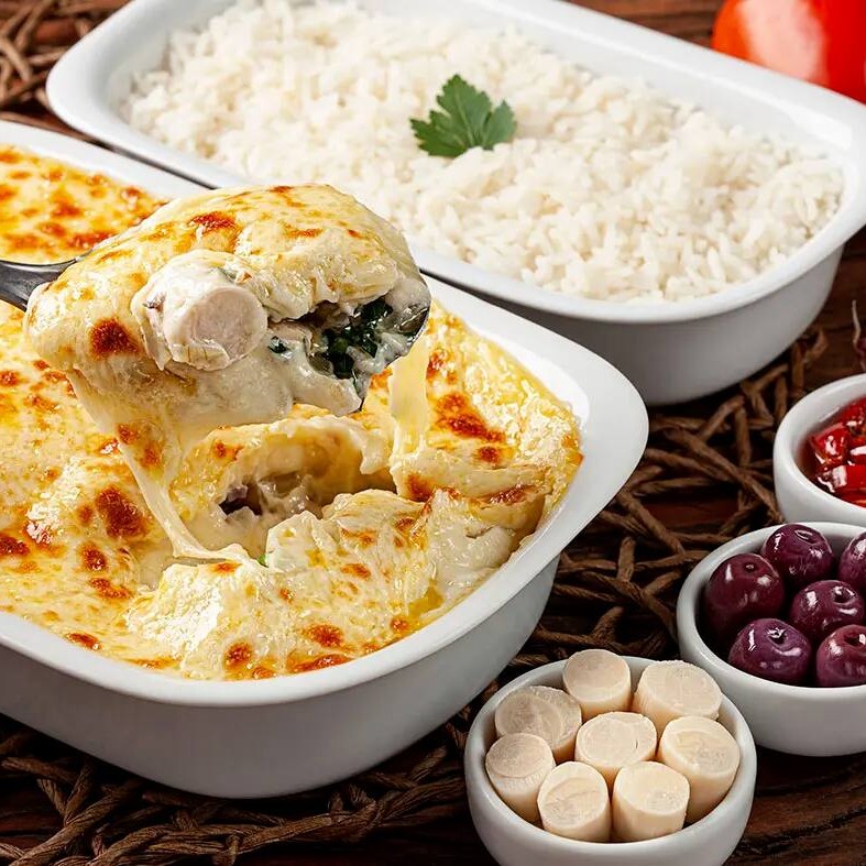O 'Aipim Suíço com Recheio de Strogonoff de Frango' é uma sofisticada delícia pertencente à nossa categoria de 'Itens Especiais'. Este prato é uma combinação perfeita de uma massa suave, feita de mandioca cuidadosamente selecionada, que envolve um recheio luxuosamente cremoso de strogonoff de frango. O sabor rico do strogonoff, combinado com a textura macia do aipim, cria uma experiência culinária única e inesquecível. Este prato é um verdadeiro deleite para o paladar, prometendo uma experiência de sabor que vai além do comum.