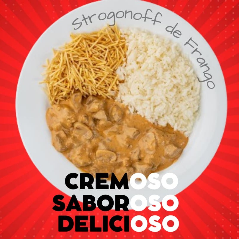 A Marmita Strogonoff de Frango é uma verdadeira delícia para o seu paladar. Esta marmita inclui um saboroso e suculento Strogonoff de Frango, preparado com frango fresco e um molho cremoso irresistível. Acompanha um arroz soltinho e perfeitamente temperado. Para completar, você tem a opção de escolher entre fritas crocantes, um aveludado purê de batatas ou a tradicional batata palha extra crocante. Este prato é uma refeição completa e saborosa que promete satisfazer o seu apetite. Experimente e encante-se com essa deliciosa opção de marmita!