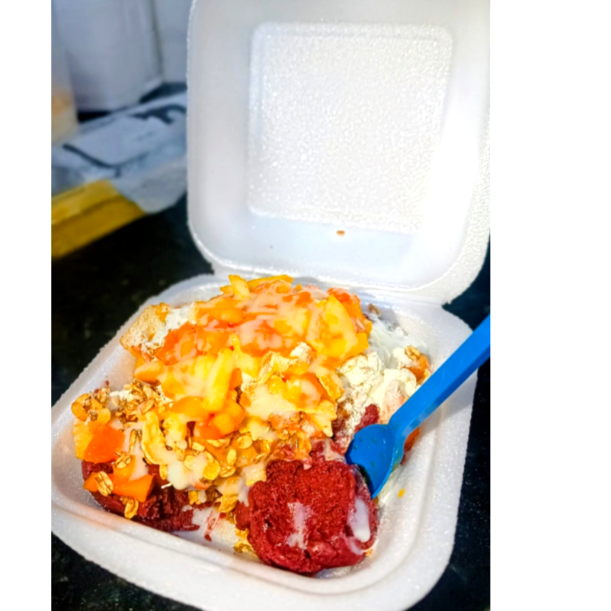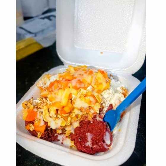 contém: Açaí,Cupuaçu,leite condensado, leite em pó, sucrilhos, granola, e Salada de Frutas(Banana,Mamão e Maça).